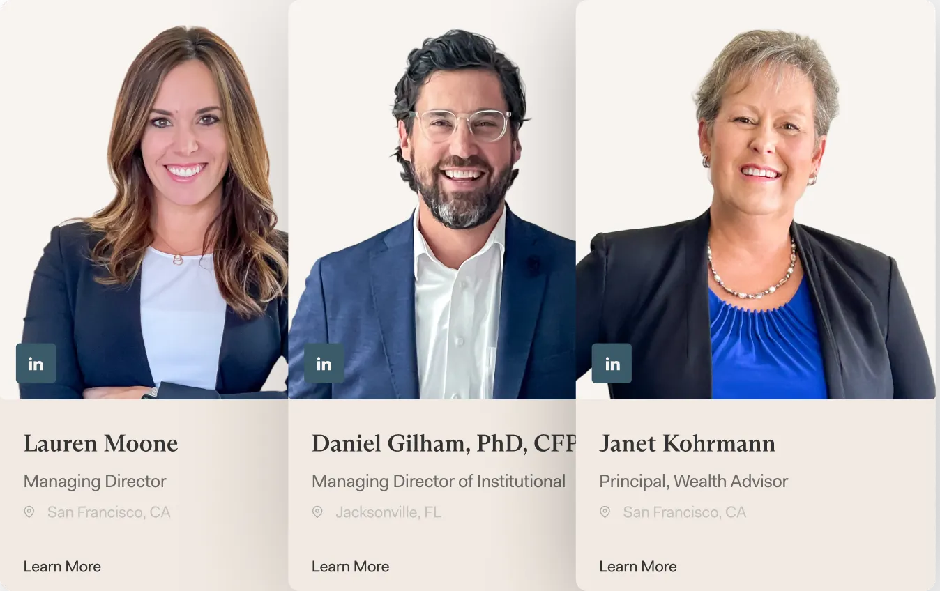 Our advisors represent the brightest minds in wealth management, and share a commitment to raising the bar in every aspect of the client experience.
