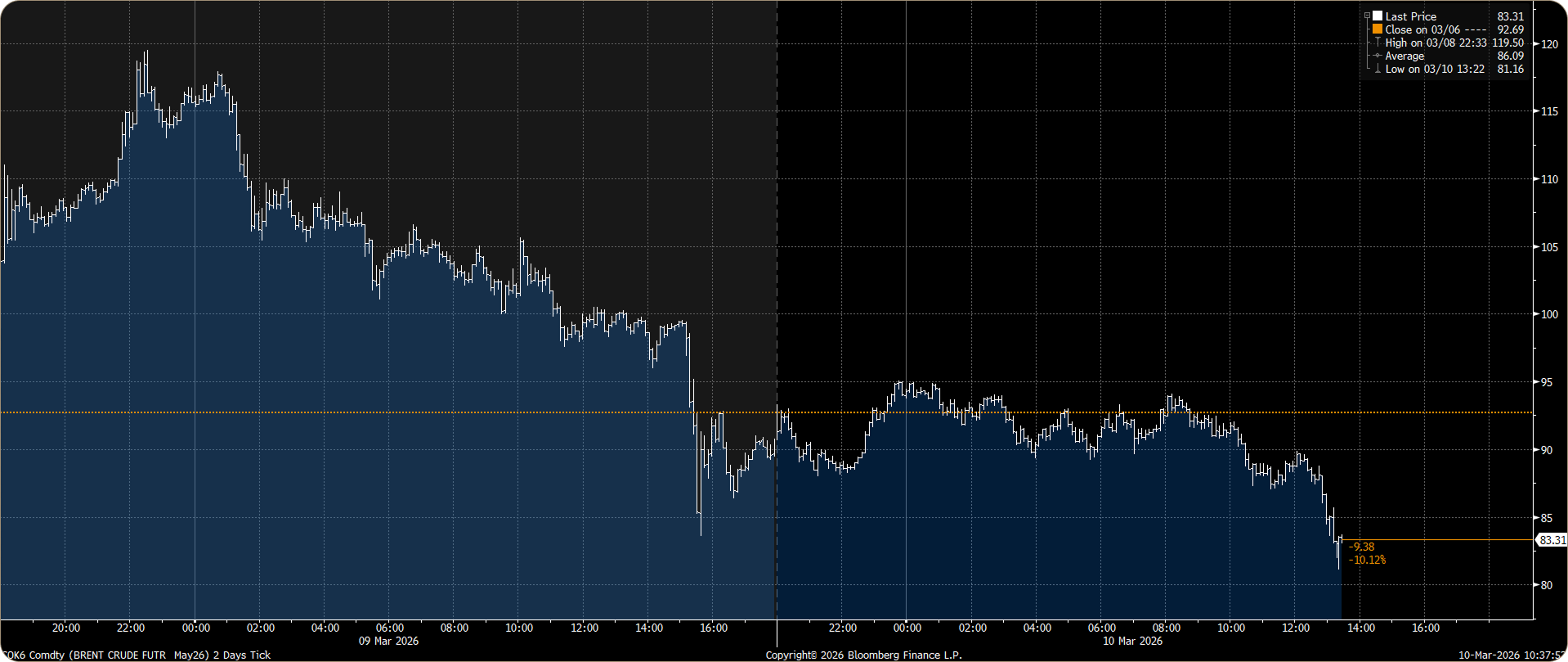 The 2026 TACO (Trump Always Chickens Out) trade appears to be alive and well. In a CBS interview on March 9th, Trump said “I think the war is very complete, pretty much.” Following these comments, oil has plummeted 32% from the intraday high of $119.50 reached on the evening of March 8th.
