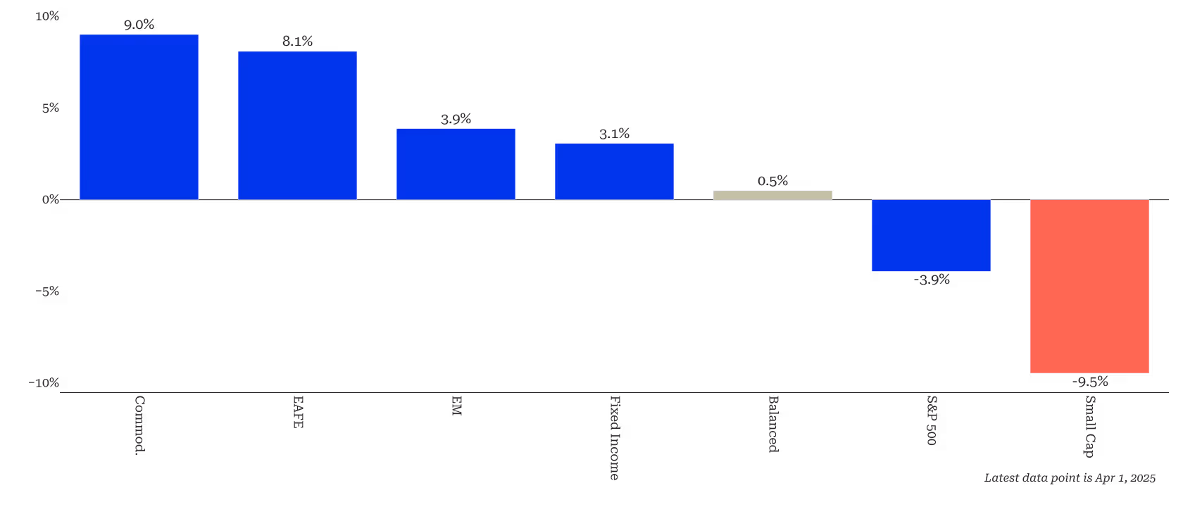 Bonds weren’t the only asset class to see gains in the first quarter. International equities also posted positive returns, with both developed and emerging markets seeing growth. This recovery follows years of relative underperformance due to U.S. market dominance and global economic and geopolitical challenges. The weakening U.S. dollar further bolstered international stock returns, enhancing the value of foreign assets in local currencies.
