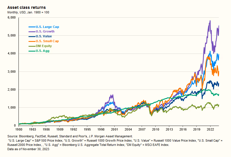 Source: FactSet, Federal Reserve, J.P. Morgan Asset Management. Guide to the Markets – U.S. Data are as of December 31, 2023.